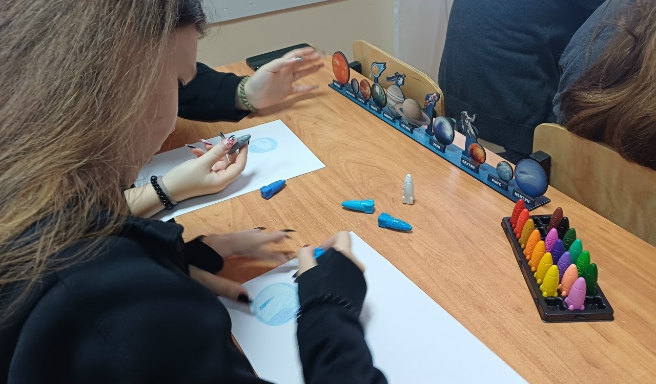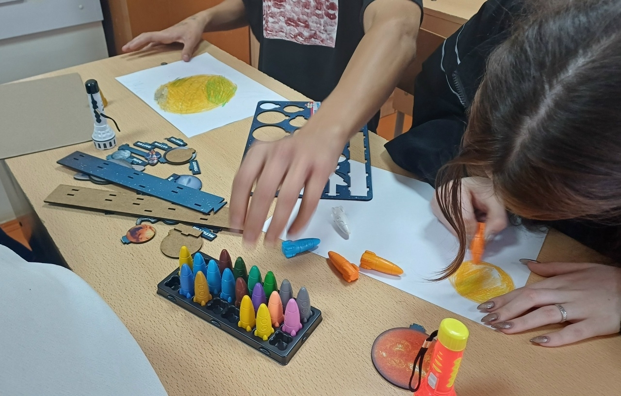 Мы предлагаем ребятам нарисовать вручную собственные карты созвездий. Сначала линии ведут неуверенно, рука дрожит от волнения перед первым касанием бумаги, но постепенно рисунок обретает очертания, начинают проявляться силуэты планет и космических кораблей, пульсируют звёзды-светлячки, озаряющие ночное небо фантазии. Каждый штрих — это шаг к пониманию собственных желаний и целей, каждый символ отражает внутреннюю потребность выразить нечто особенное.